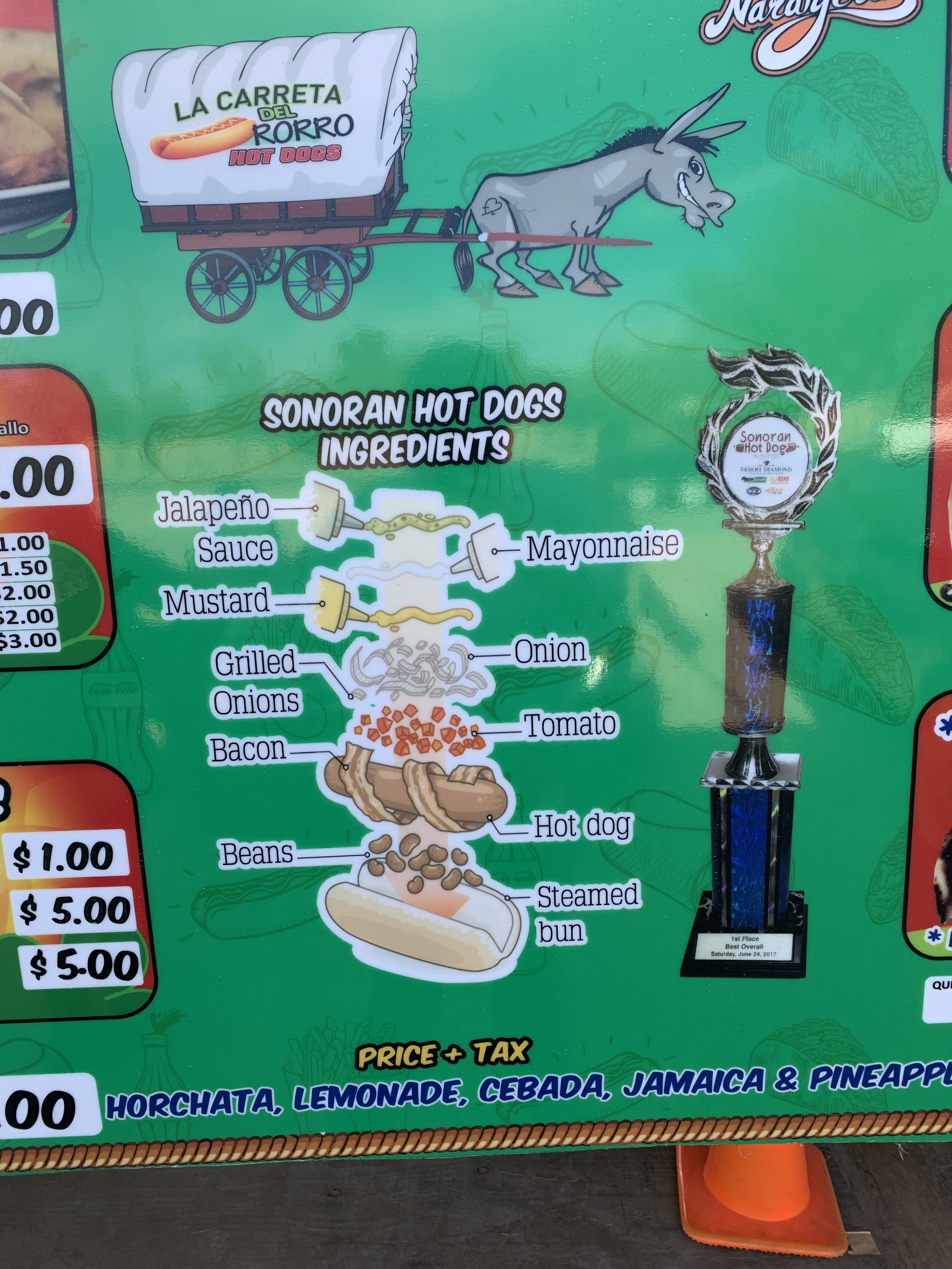 - La Carreta del Rorro (main location on Cortaro Road east of I-10): Food truck with a permanent, shaded patio constructed around it. In 2017, they won "Best Overall" in the Sonoran Hot Dog Challenge!