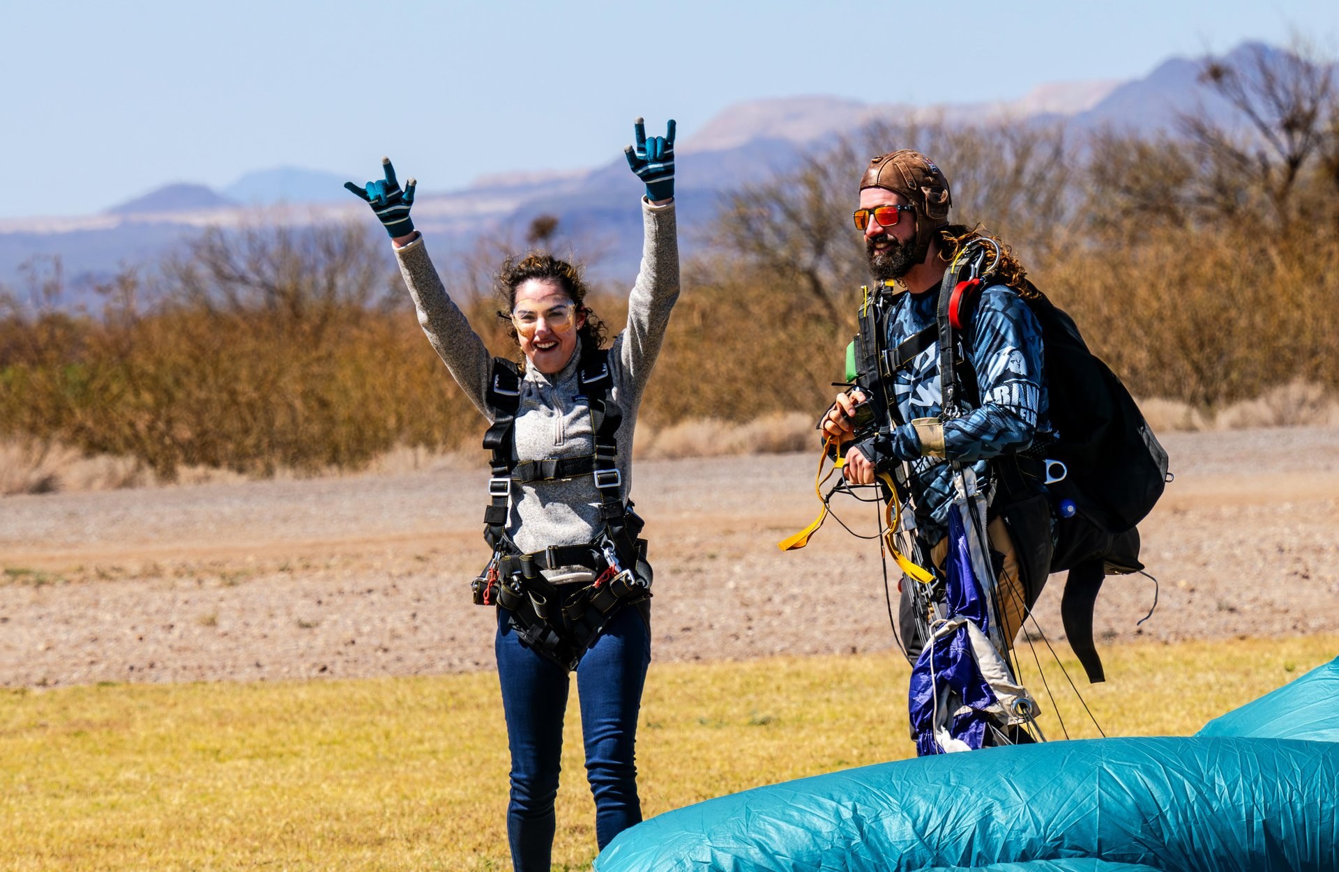 During the fall and winter months, bring a light jacket for comfort. Gym shoes are required for all jumpers. Once your parachute is deployed, you'll have plenty of time to admire the scenery and take in the beauty of the Sonoran Desert from above.